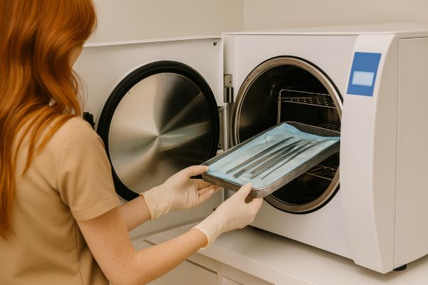 Notre salle de stérilisation répond aux normes actuelles et tout le matériel de soins est suivi par code-barres